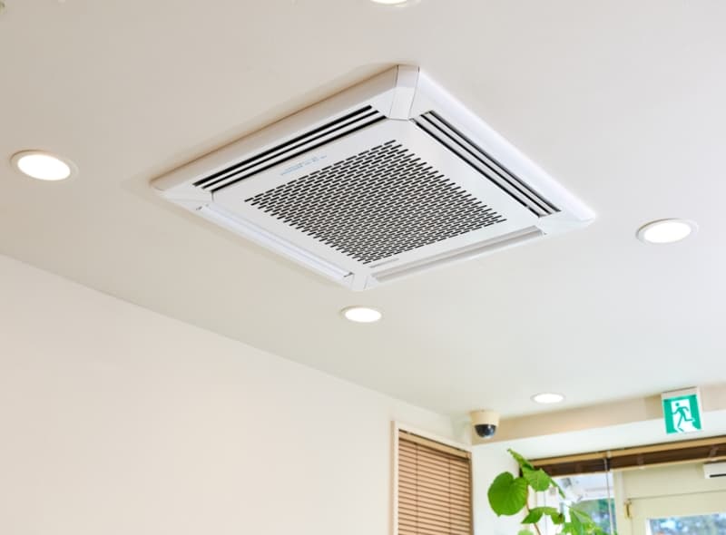 当院は、患者の皆様が安心してご来院して頂ける空気環境の実現のために、業務用空気清浄装置エアロシステム35Mを天井に設置しています。