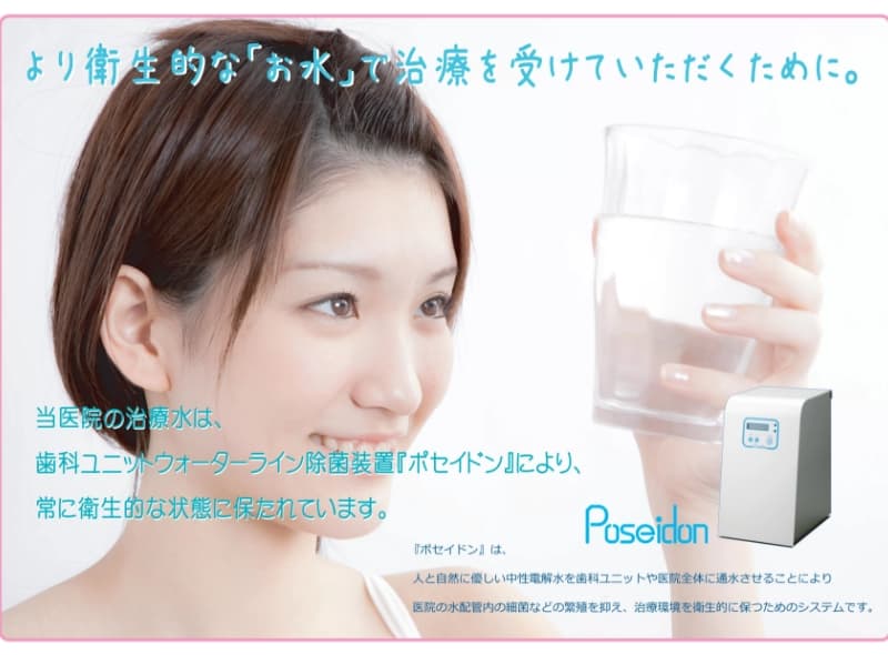 当院の治療水は、歯科ユニットウォーターライン除菌装置『ポセイドン』により常に衛生的な状態に保たれます。